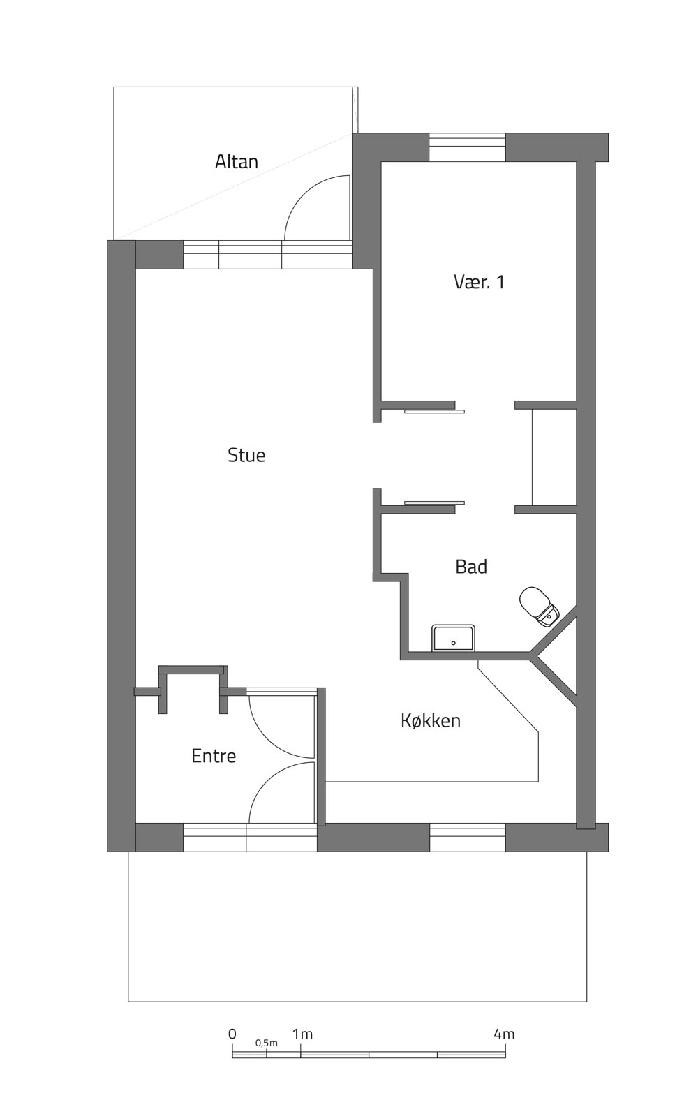 Boliger i stueetagen har terrasse, mens dem på 1. og 2. sal har altan og møblerbar svalegang.